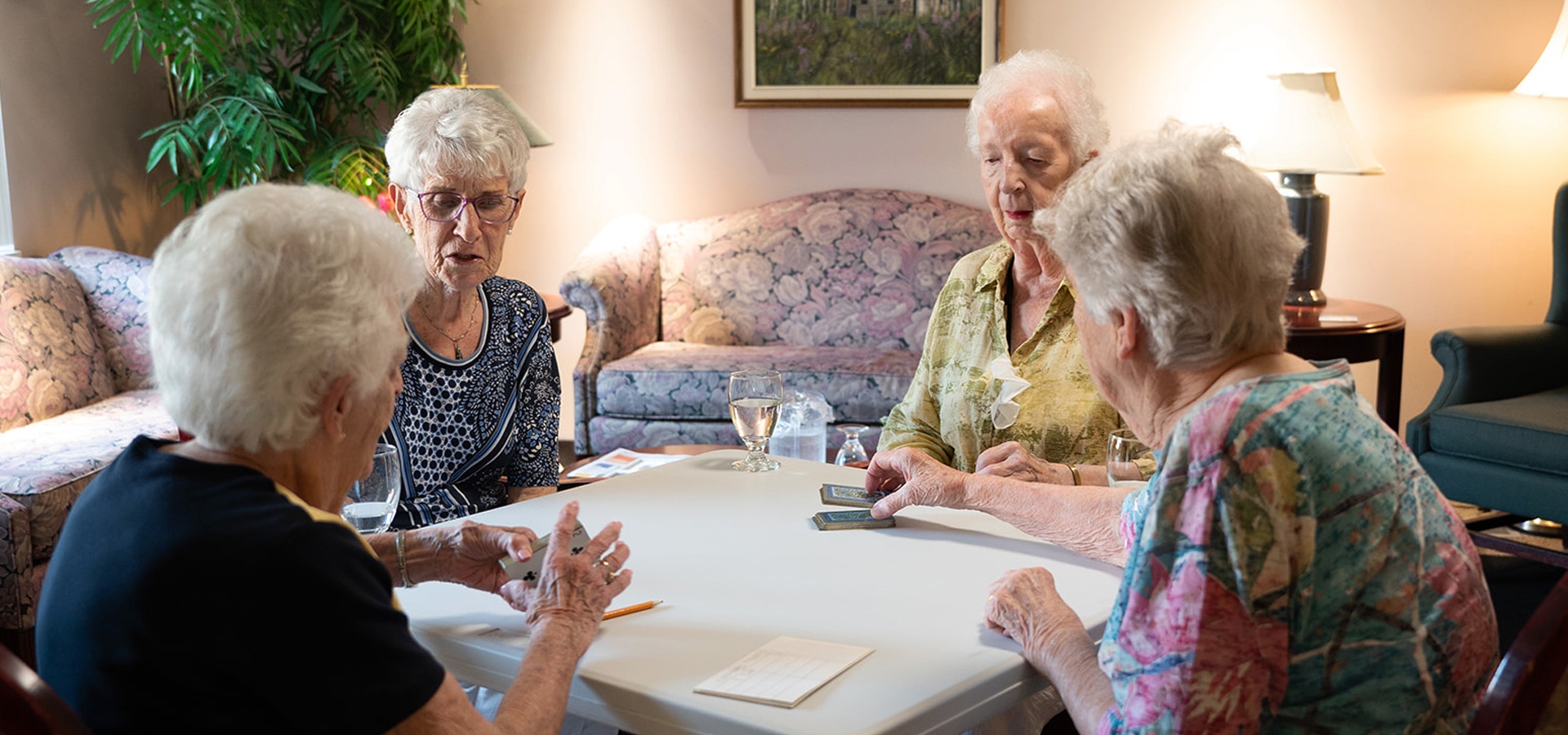 Residents enjoying a card game at Canterbury Heights, a supportive senior living community at Canterbury Foundation